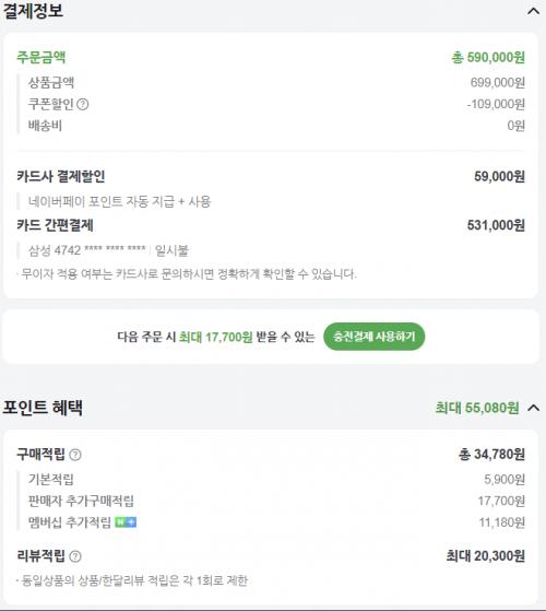 신품 이정도면 잘 사신거죠. 네이버적립금은 나중에 쓸수 있으니 좋은가격 같습니다~ | ||