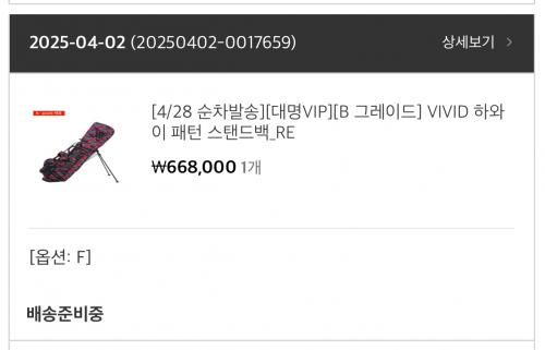 저도 2일에 주문한 골프백은 아직 배송준비중이고...