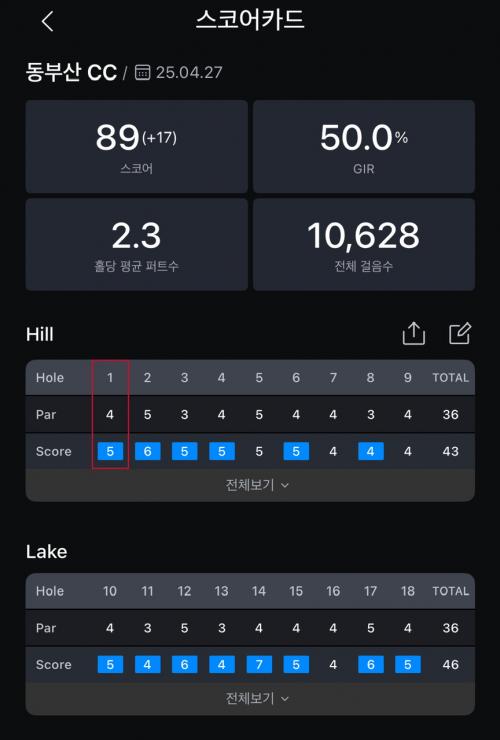 퍼팅 연습을 제일 많이 하고 좋아하는데 오늘은 퍼팅감이 연습그린에서 조차 평소보다 안 좋다 생각했는데 2온 잘하고 쓰리펏 보기를 너무 많이 했네요.