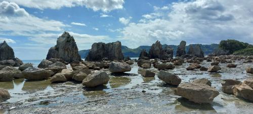 둘째날은 와카야마 관광 해안 도로 위주로 하시 구이이와 해변 바위 보이시죠. 그리고 니치 폭포와 시라하마 부근의 센조자키 관광 했네요. 왕복 4 시간 정도 운전 한 것 같아요. 니치 폭포가 꽤 먼데 이왕 간거 보자고 무리 했습니다. 숙소는 미나베 근처에 호텔에 묵었어요.