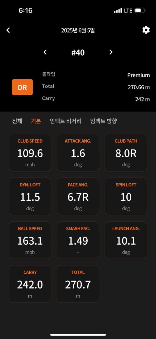 그래서 그때부터 연습은 안하고 그냥 식사 및 음주를 줄이고 퇴근하고 애기 자면 아파트 헬스장가서 10키로씩 뛰었습니다. 처음 한달은 10키로는 커녕 5키로를 한시간 가까이 걸려서 걸었습니다. 심지어 근력운동 병행한다고 깝치다가 20키로 케틀벨 스쿼트하다가 디스크 한번 다시 터져서 또 주사맞았습니더.. 그래도 꾸준히 런닝하다보니 그러다가 점점 살이 빠지고 체력이 붙더니 3달째 되는 날엔 드디어 70분만에 10키로 주파에 성공했습니다. 그러니 자연스레 뱃살도 빠지고 체중이 줄어 72키로 까지 빠졌습니다. 그리고 허리디스크 증상이 서서히 좋아져서 더이상 물리치료나 도수치료를 받지않아도 일상 생활이 가능해졌습니다. 그리고 제일 좋았던 건 아이와의 일상도 기쁘게 볼 수 있는 건강상태를 회복하게되었습니다. 그러다보니 다시 슬슬 골프도 다시 욕심이 생기더라고요. (물론 라운딩은 주기적으로 다녔습니다. 연습을 안했을뿐..) 체중도 8키로 가까이 빠지고 볼스피드도 기대도 안하고 4월부터 다시 연습시작했는데 별 노력을 안했는데 점점 스피드가 붙더라고요. 그리고 5월부터는 트랙맨 쿠폰 끊어서 흔히 말하는 최대 스피드로 20개씩 치는 훈련을 했습니다. (방향 생각안하고 클럽스피드만 띄워놓고) 그랬더니 이제 필드에서 치듯이 편히 치면 100-105마일 정도나오고 풀파워도 때리면 110가까이 나오네요.