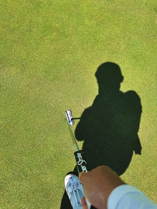 퍼터가 위에서 보면 베티 SS28처럼 생긴 와이드 블레이드에 싱글밴드 샤프트인데, 정확히는 안 보이네요 ^^