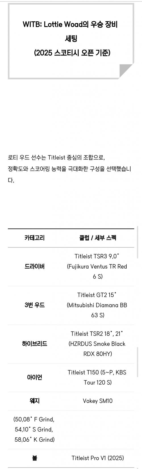 지난주 스코티시오픈 우승선수 로티우드 WITB가 저와 같아서 올립니다.