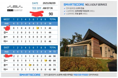 속리산cc는 십년도 넘은 예전에 아리솔CC로 불릴때 가봤는데, 거리는 길지 않아도 상당한 산악형 골프장이라 어려웠던 기억이 납니다. 두 형제분께서 첫 조인에 저 점수면 잘 치시는 분들이네요.