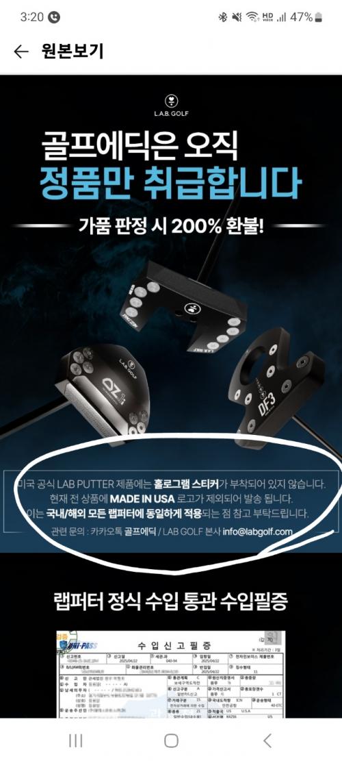 어제자 가입해서 수개월전에 한번 글 올라온 것에 대하여 굳이 찾아서 댓글 달고 다시 이렇게 글까지 작성 하는 이유는 모르겠지만, 이거 원문 보면 퍼터 커버에 L.A.B vs L.A.B. 마지막 점 오바로크가 다르던데 그 사진은 쏙 빼놓고 글 작성하시는 이유는 무엇인가요? 의심이 가면 커버만 바꿔서 사용하면 된다라는 논리가....ㅎ