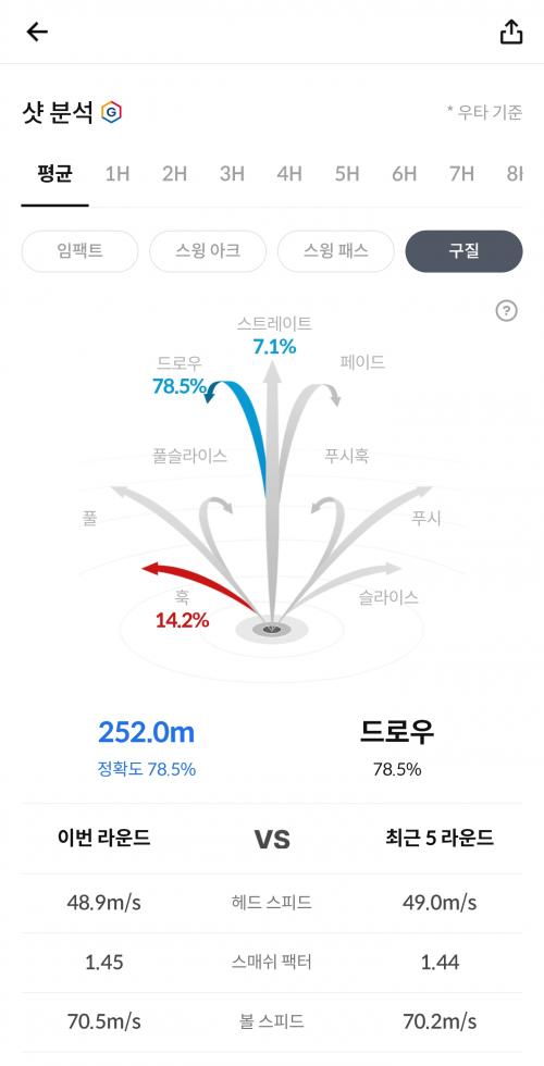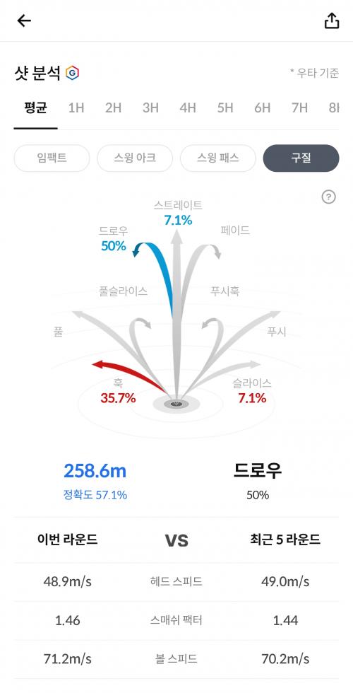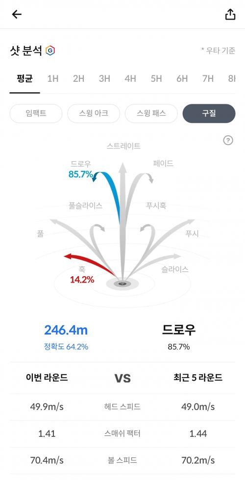 훅 때문에 고생인 볼스피드 70m/s 전후인 분들께는 의미가 있지 않나 싶습니다.