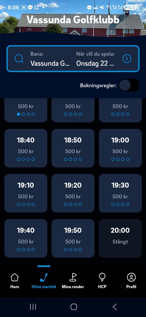 Min Golf에서 드디어 부킹 시작 !! 하는데... 안타깝게도 스웨덴어만 되네요;;