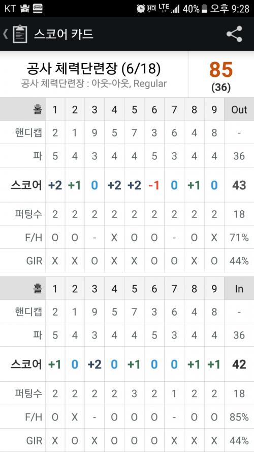 온그린 못시켜서 퍼팅수가 적어진듯 해요...ㅠㅠ | ||