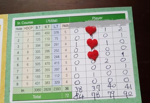 슈퍼초 푸쉬슬라이스 남편은 여기서 라베했네요(84타)ㅋㅋ매번 죽어서 스코어가 똥망이신분이..에라이 퉤퉤
