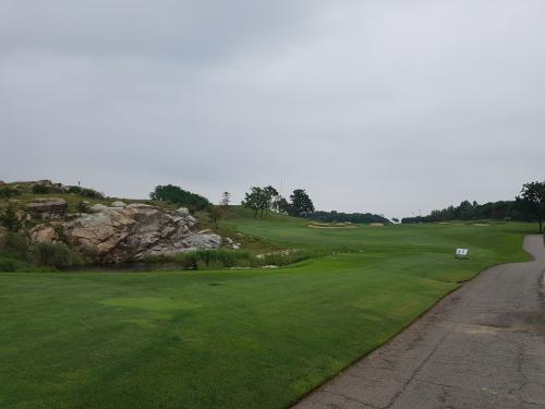 아침에 비가 올것 같아서 조마조마 했는데 3홀 인가 한 10분간 폭우 온 이후로 해 한번 안 뜨고 시원한 바람 맞으며