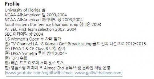 (에이미 조 뿐만아니라 유튜브 골프 레슨 선생님들 약력들 나오네요..ㅎㅎ)
