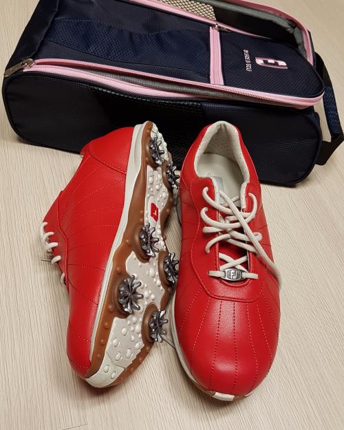 클럽하우스내에선 티(tee)도 안사는데 뭐에 홀리듯..이 빨간골프화가 너무 취저 심쿵이라 이거 얼마예요? 하고 한쪽만 신어보고 바로 사왔네요.