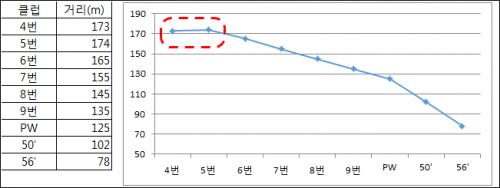 GDR서 체크해보니, 정타확률이 떨어지기 시작하는 5번, 4번 아이언은 비거리 역전현상이 나타나고 좌우편차도 커지더라고요.