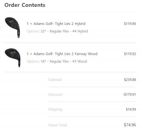 어제 5번우드, 3번 유틸 2개 합배송해서 항공운송료 13달러 나왔습니다. 참고하세요. | ||