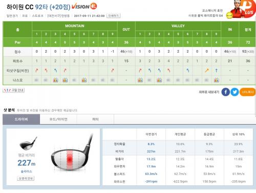 스크린 점수에 10 정도 더하면 필드 스코어 나옵니다. 그런데 머리 올리러 가서 100타 깨실듯 하네요. 숏게임 집중하세염 | ||