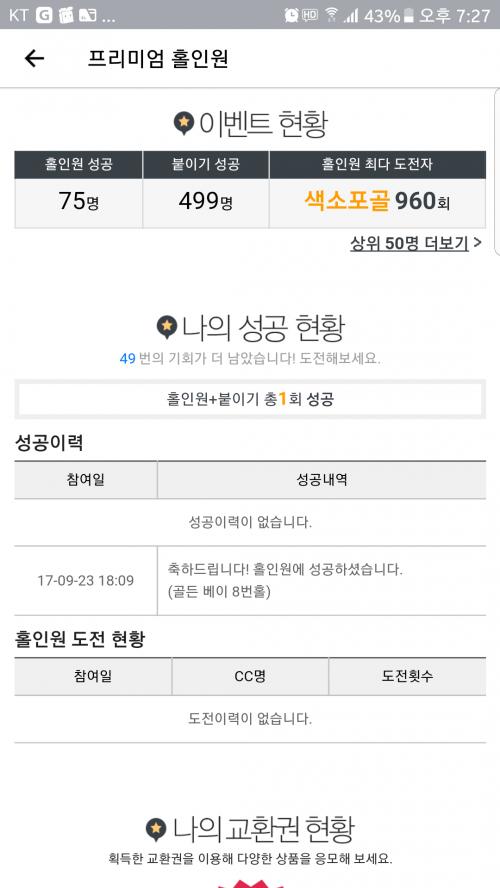 이번에도 역시 골프존 홀인원이벤트 참여했기때문에 3000만원 가지고 한달간 홀인원 한사람들끼리 나눠먹게되겠네요.