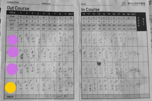 스코어카드를 세세히 적으셨네요.. *온%퍼팅 보기 좋네요.. | ||