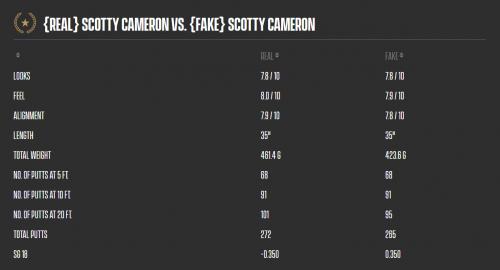 오늘 우리는 유명 브랜드 제품이 실제로 성능이 더 뛰어난지를 알아보려고 정품 (REAL) Scotty Cameron 퍼터와 가짜 (FAKE) Scotty Cameron 퍼터를 비교 테스트 해보았습니다. 즉, 테스트에 참여한 골퍼들의 주관적인 피드백에 어떤 영향을 미치는지 뿐만 아니라 객관적인 데이터에도 영향을 주는지 알아봤습니다. 과연 테스터들은 느낌과 모양 부분에서도 위조품 카메론을 진품과 같이 높게 평가할까요? 그리고 가짜 퍼터와 정품 퍼터중 어떤 것이 더 나은 성능을 보일까요?