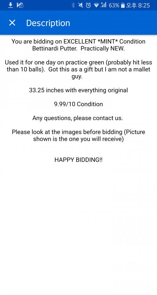 판매자 말로는 선물받아서 연습 그린에서 10회 쳐본것이 전부라고 랍니다.