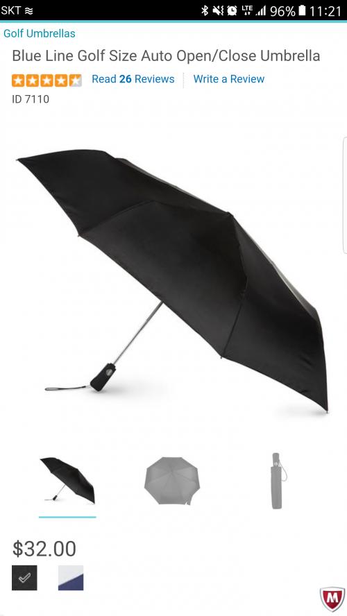 오토 오픈,오토 클로즈 골프사이즈 우산이 정가 32불, 프로모션 후 19.2불.