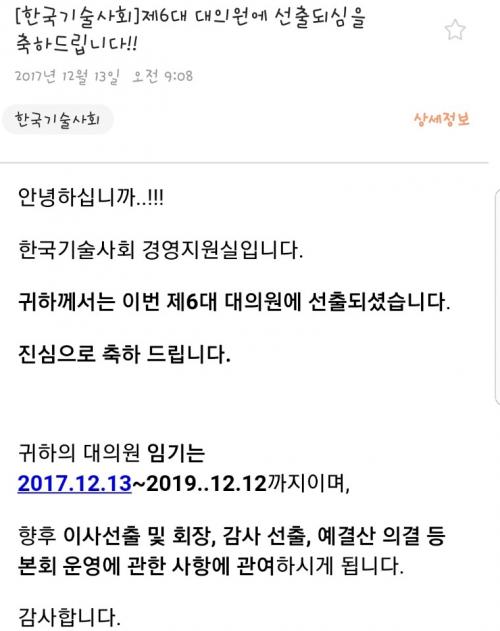 한국기술사회 대의원 당선 축하드립니다.