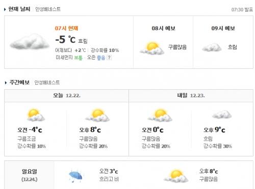 일요일에 눈 또는 비 예보확률이 60% ---> 30%로 급변경.