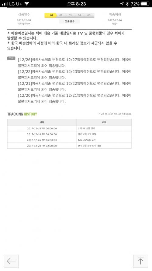 저도 이거때문에 확인해봤는데 같은날 출고된게 하나는 대한항공 하나는 UPS 였는데 둘이 도착한게 2주정도 차이났었습니다 ㅠㅠ | ||