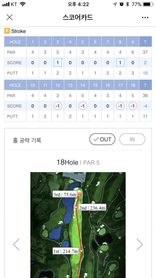그리고 방송은 못탔지만 89m 52도로 0.7m 붙혀서 버디 한 것도 행운이었고, 마지막 홀 세컨 3번 우드로 때렸는데 236 ㅋㅋ 드라이버보다 더 나와서 진짜 놀랬습니다 방출할려고 했더니 저랑 계속 같이 있고 싶나 봅니다