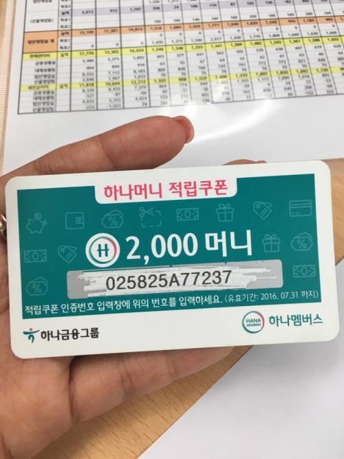 하나머니 2,000원 바우쳐 제가 직접 쪽지로 보내드립니다.