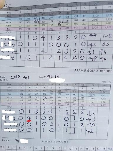 스코어를 떠나서 코스가 구분이 가지않고 잔디상태가 너무 안좋아서 가고 싶지 않네요. 티샷을 할때 우리홀이 어디인지 구분도 안되고 캐디가 보라는 방향만보고 치는게 어이가 없었습니다. 저는 깃발을 보고 좌측도그렉 홀이라고 판단 하고 캐디가 보라는 방향이 아닌 약간 다른쪽으로 최단거리라 생각하고 쳤는데 그 홀이 우리홀이 아닌 남의 홀 이었습니다. ㅋㅋ 잘 치고 오비났습니다. | ||
