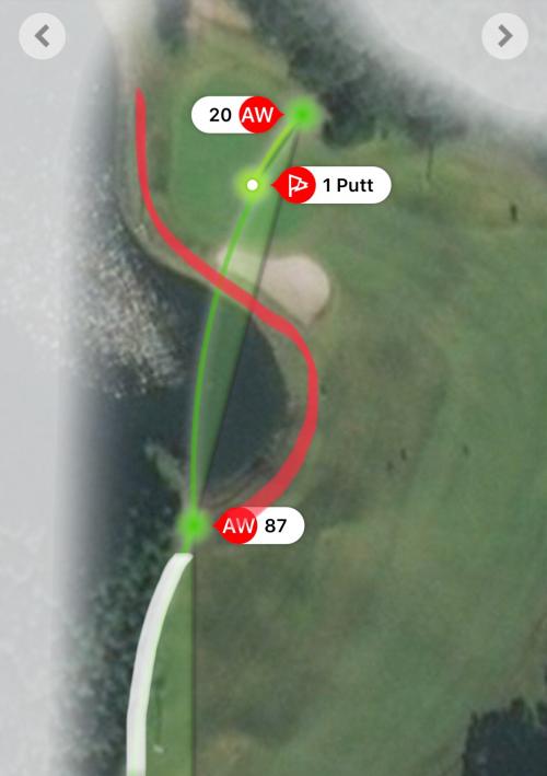 저 위치는 왼쪽 하얀 OB말뚝 중 마지막 말뚝을 지나서 있었지만 가상의 연장선이 있다면 넘어간 위치