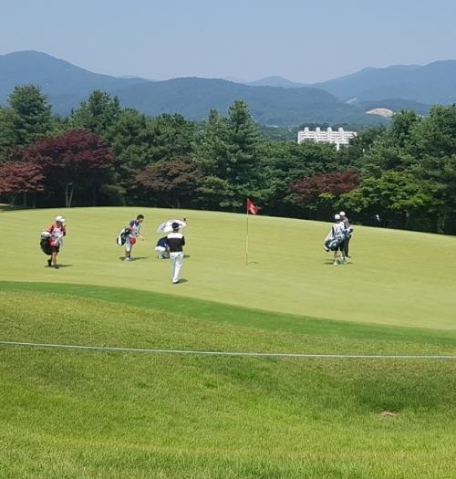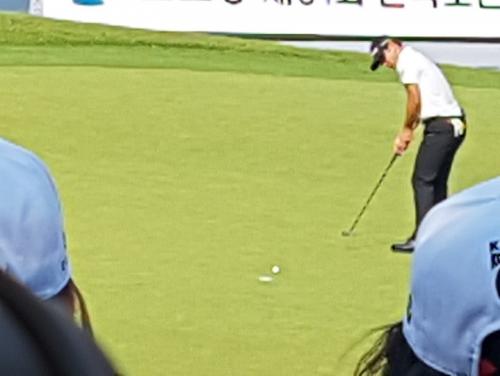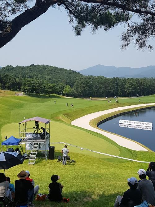 18번홀 그린으로 레이업으로 파세이브를 노리더군요 ㅎㅎ 재밌는 장면이었습니다
