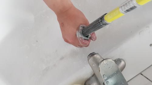 그립을 물로 적신다 -> 초록색 수세미로 비누칠해서