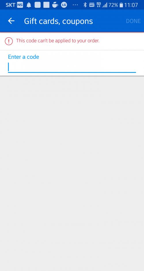빌링 주소가 미국/캐나다로 되어있지 않으면 코드가 안먹을거에요~~ | ||