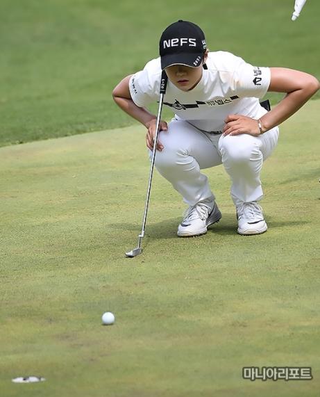 박성현 선수의 최근 경기를 보니까 라인을 홀 방향으로 정렬을 하고 뒤로 가서 라인이