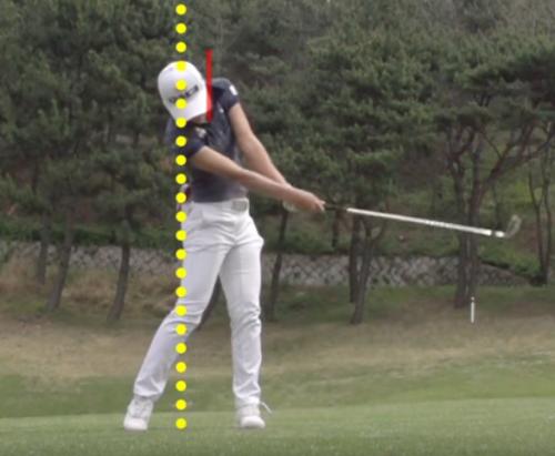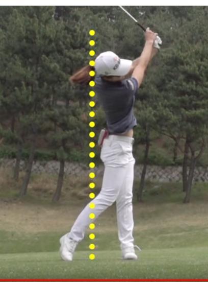 1. 테이크어웨이시 오른쪽으로 너무 많이 밀려가고(스웨이) 무릎이 굽혀지고, 골반이 많이 틀어집니다.
