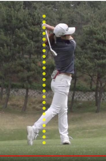 역시나 체중이동이 덜되니 뒤에 체중이 남네요. 왼발무릎도 굽어진 상태로 무너지고