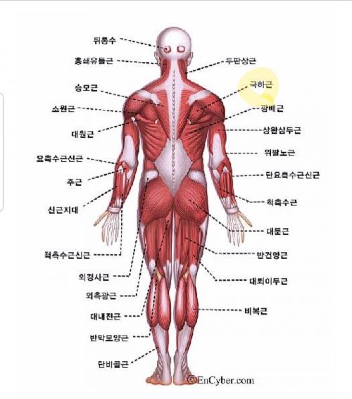 너무 오랜만에 연습장을 가서 그런가 온몸에 힘이 잔뜩든채 쌔리 후리다 왔더니, 몸 여기저기가 쑤신데 특히 오른쪽 날개뼈 안쪽 근육이 찾아보니 극하근이라는 부분이네요.