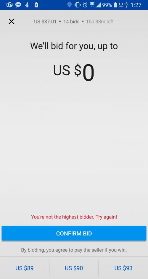 밑에 3개 금액중 가장 높았던 87딸라를 선택하고