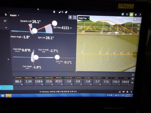 타감은 중공구조라 그런지 튕겨나가는 느낌에 가까웠습니다. 아이언과 유틸의 중간 느낌? 이건 트랙맨 측정 자리가 아닌 옆자리에서 쳐본거라 데이터가 없습니다. i210보다 멀리 나가고 관용성은 비슷한 느낌 이었습니다.