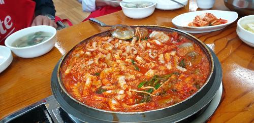 끝나고 지인들 따라서 간 짱구네 란 낙지요리집..떡복기 국물에 낙지 , 부추, 그리고 나중에 면 넣고 밥넣고