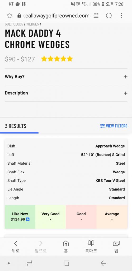 웨지는 맥대디 3 forged 헤드에 tour isue s200 사용중입니다. 웨지 샤프트를 좀 가벼운걸 사고 싶어서 맥대디 4를 보고 있는데 샤프트 kbs tour v를 사용하는 매물들이 있더라고요.