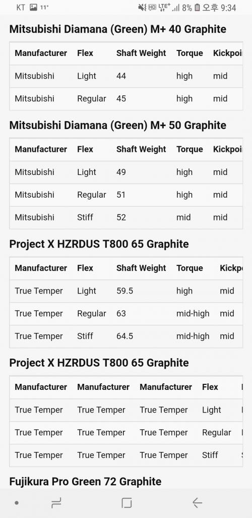 샤프트 종류가 너무많아서 당황했습니다. 지금까지는