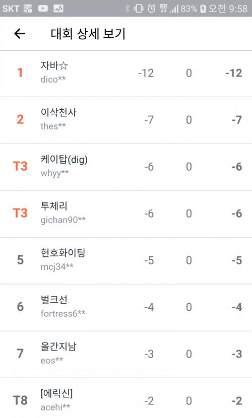 홀인원 : 이삭천사, 해동파(니어), 힘빼고치자
