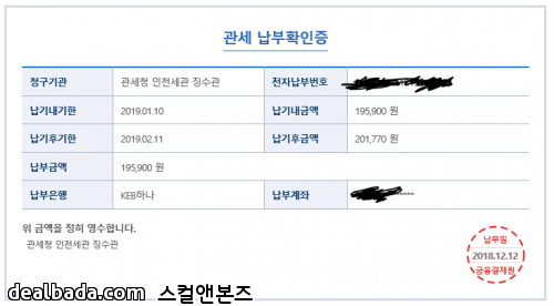 당연하게도? ㅎㅎ 관세 , 부가세 모두 내게 되었습니다.