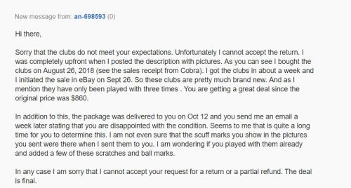 이 셀러놈은 반품도 안받고 너 싸게 낙찰받았으니 (배송비 포함 432$) 그냥 쓰란식으로