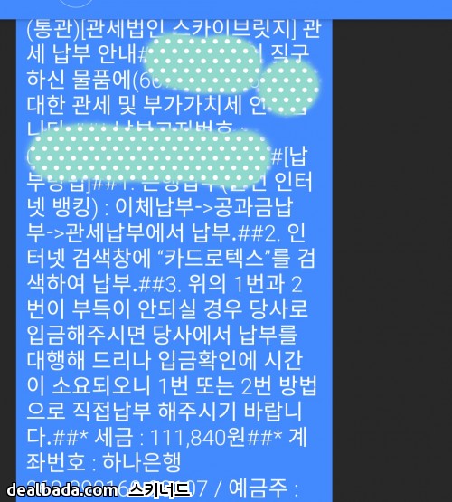 그런데 오늘은 관세면제 소식이 문자로 날아오네요.