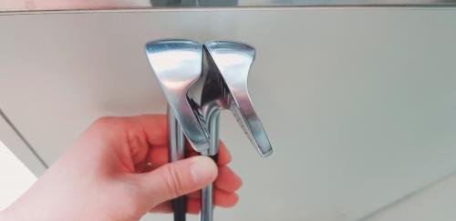 와이프꺼라 라이각을 1도 눕혔습니다. 눕힌 후 V300-6의 라이각과 비교시엔 0.5도 차이가 납니다. 물론 이 사진은 약간의 오바스럽게 정렬된 감은 있습니다만, 페이스면을 기준으로 정렬시켰을때 더 flat한 모습을 보여줍니다.