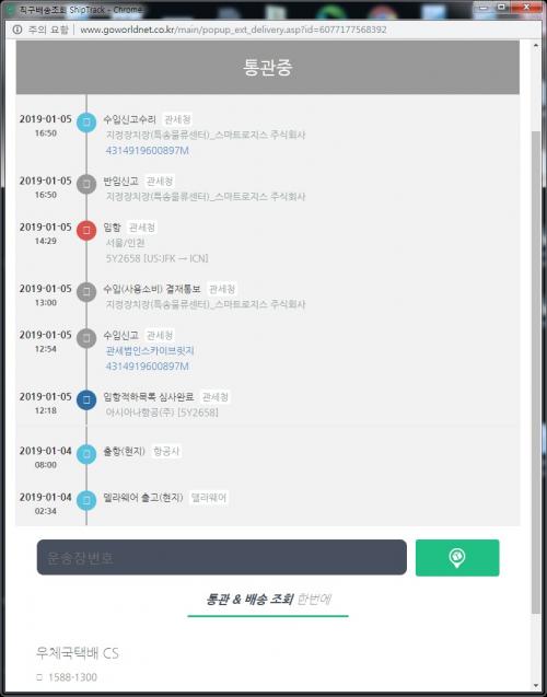저는 1/4 17:21 반입신고후 멈췄습니다