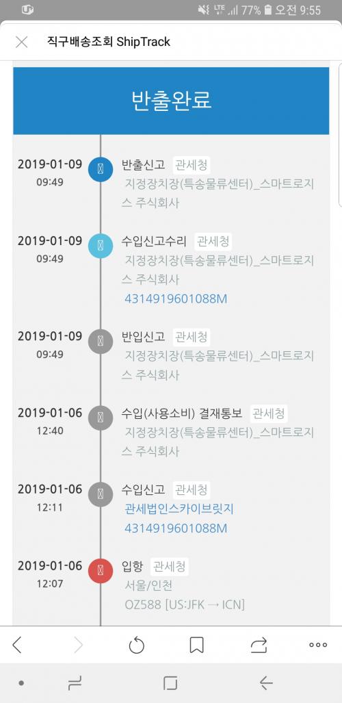 저의 추가4번도 통관완료 떴네요 ^^ | ||